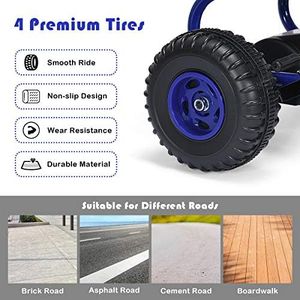 The Hauck Cyclone Pedal Go Kart is designed for kids aged 4-10 years, making it suitable for a broad age range. One of its key strengths is the adjustable bucket seat, which ensures that children of various heights can ride comfortably and safely. The robust tubular steel frame adds to its durability, making it a reliable choice for both indoor and outdoor use. Additionally, the 12-inch EVA foam plastic wheels provide versatility across different terrains and contribute to its ease of use.