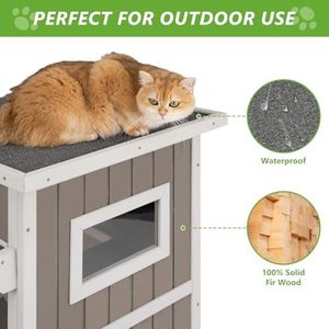This outdoor cat house by GUTINNEEN is designed to keep cats warm and dry in harsh weather. Its solid wood build combined with a double-layer insulated liner helps maintain warmth by trapping the cat's body heat, which is ideal for winter or cold climates. The thicker 0.78-inch sponge liner adds extra comfort, making it cozy for feral or stray cats.