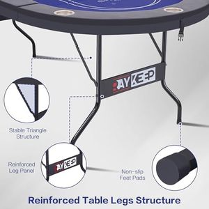 The Triton Foldable Poker Table with 10 Chairs is designed for those who want a complete, portable poker setup. It comfortably accommodates 10 players, making it suitable for larger game nights or casual tournaments. The table has a 48-inch depth and comes with 10 lightweight folding chairs, each with padded armrests for added comfort during long sessions. The surface uses a spill-resistant poker mat that allows cards and chips to move smoothly, which helps keep the gameplay flowing without interruption. Built-in cup holders at each seat are a smart addition to prevent spills and keep drinks handy.
